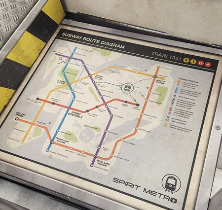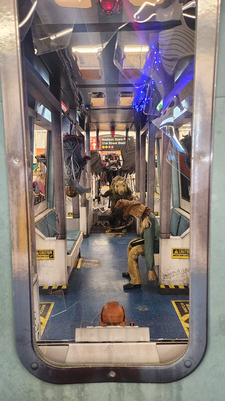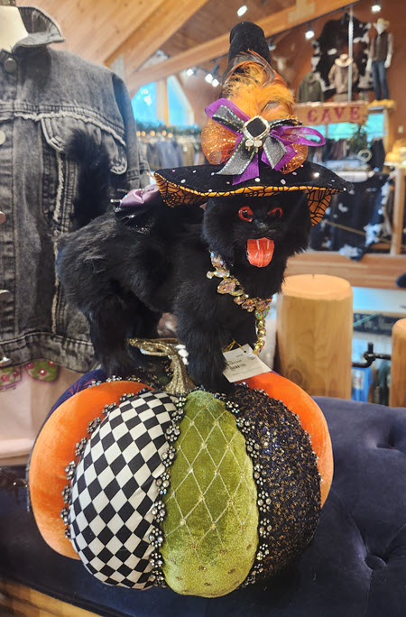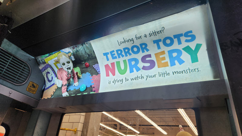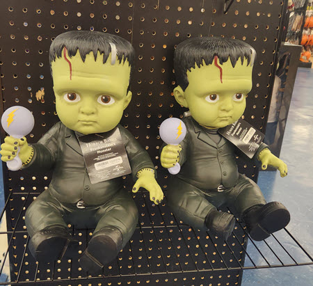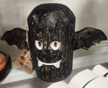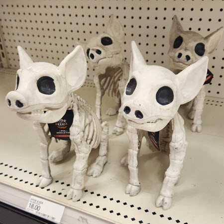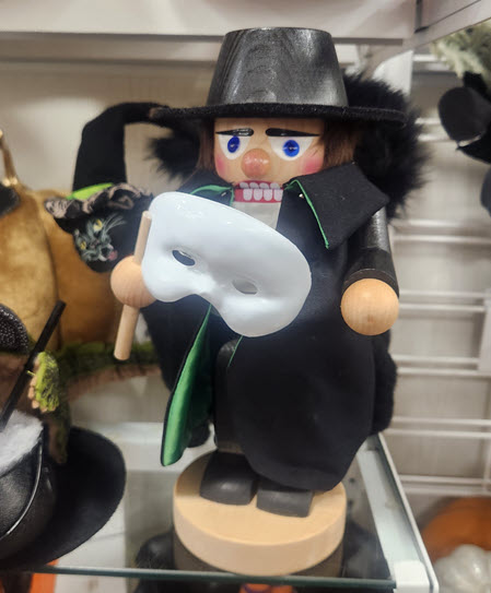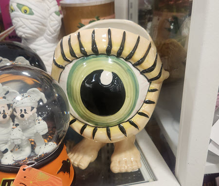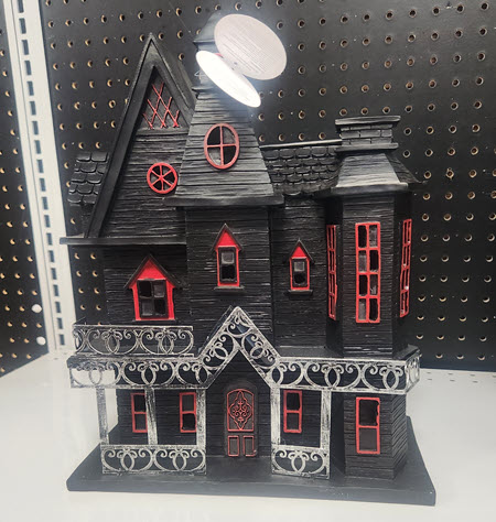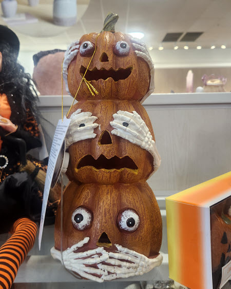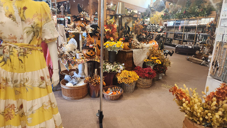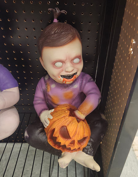 You walk into what looks like a huge spooky decoration store. In the corner, a skeleton prop sits at a register, covered in cobwebs.