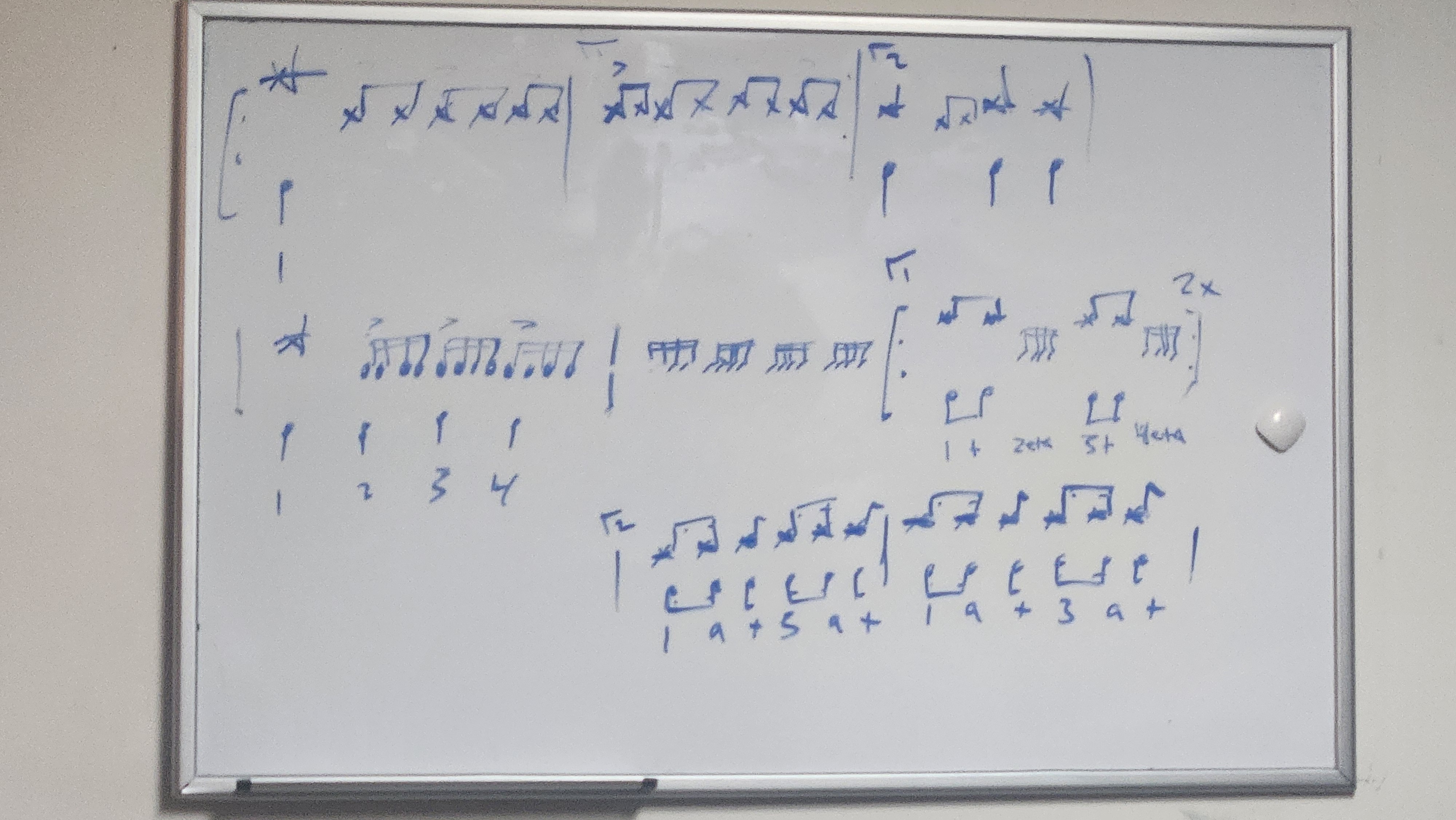 We started learning a High on Fire song. Sometimes my teacher identifies music that he could probably play on bass and I could probably play on drums, and then we learn it. (I imagine he does some advanced prep.) He writes a portion of the song out on the whiteboard, we spend the first half of the lesson learning it and getting it up to a reasonable speed, and then we play together (me on drums, him on bass).